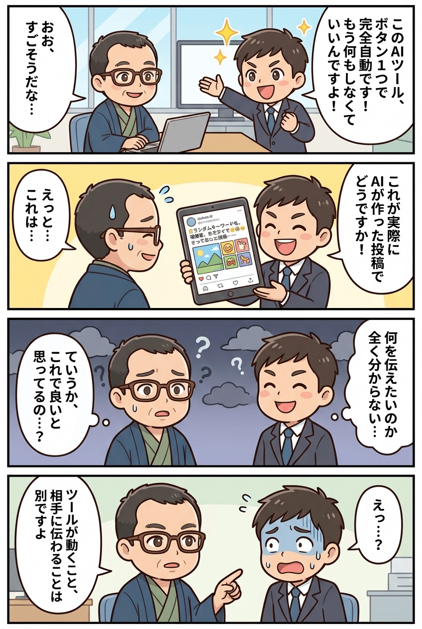 完全自動AI投稿ツールを自信満々に売り込んできた人の残念すぎる中身
