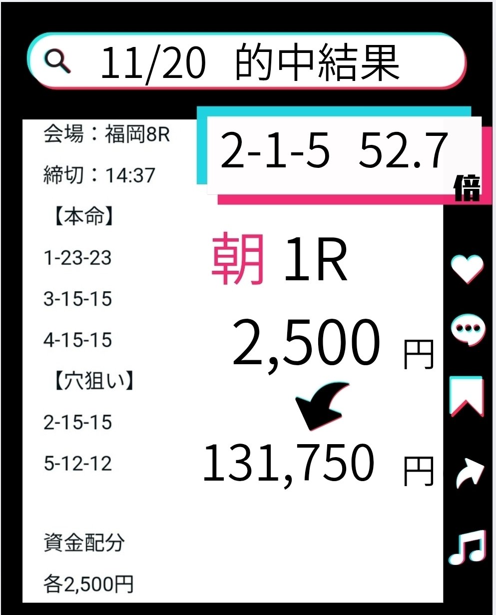 ⚡【11/20】今日の結果? プラス643,760円 ?的中24本?