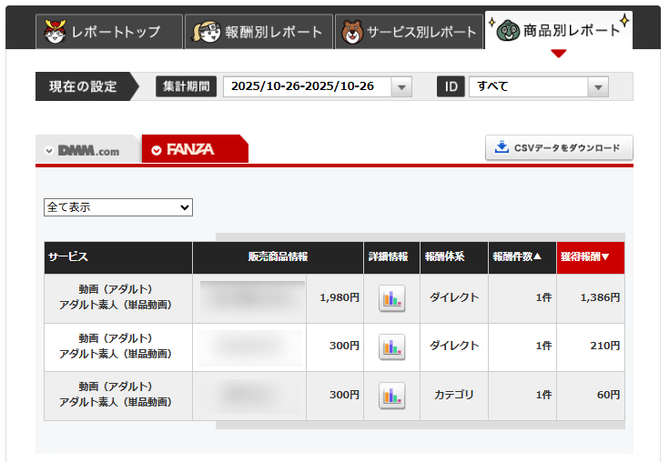 素人動画は安いとダイレクトで200円~350円が多いですが、1,000円以上もたまに売れてます。同じ力を注ぐなら高単価商品を訴求したいですね。有料欄は···