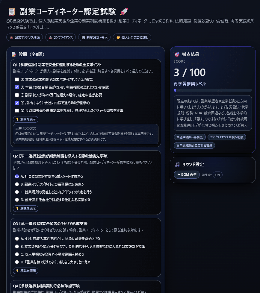 ?『副業コーディネーター』とは、個人と企業の双方に対して、副業に関する法務・税務・キャリア・実務支援を行える専門人材を育成し、健全な副業文化の確立を推進する人材。?