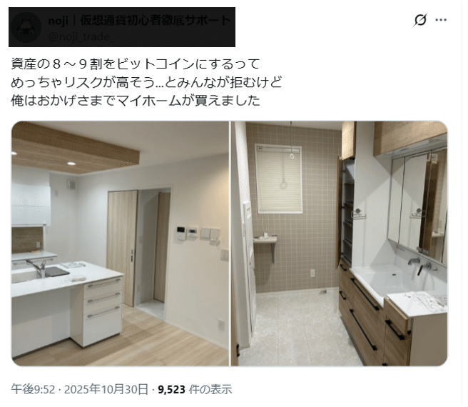 SNSで見たのですが、「BTCでマンション買いました!」という投稿。確かに、早くからビットコインを買っていた人なら、今ごろは数千万円、億単位の含み···