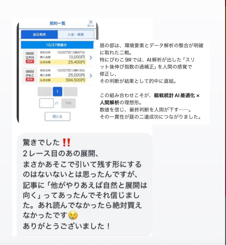 2025年 10月27日 (月) 的中報告 競艇予想 合計払戻金→¥1,668,080