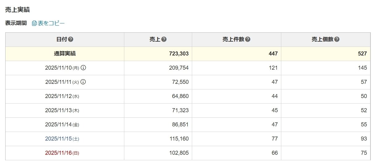 【中国輸入×物販】【実績公開】先週一週間(11/10〜11/16)の楽天市場の売上は···